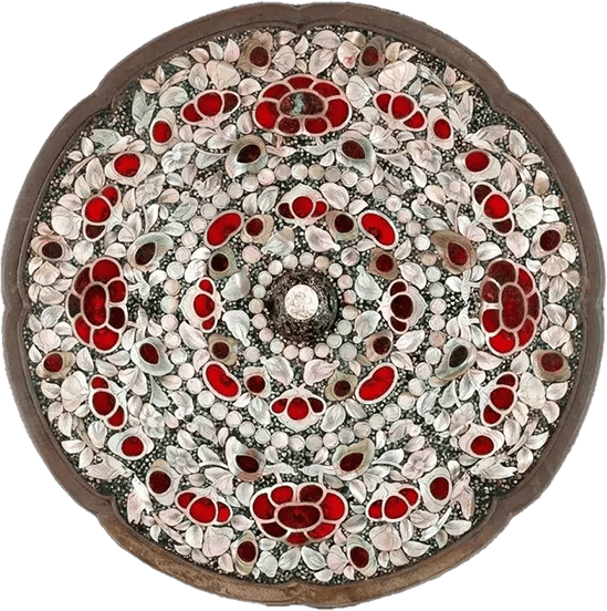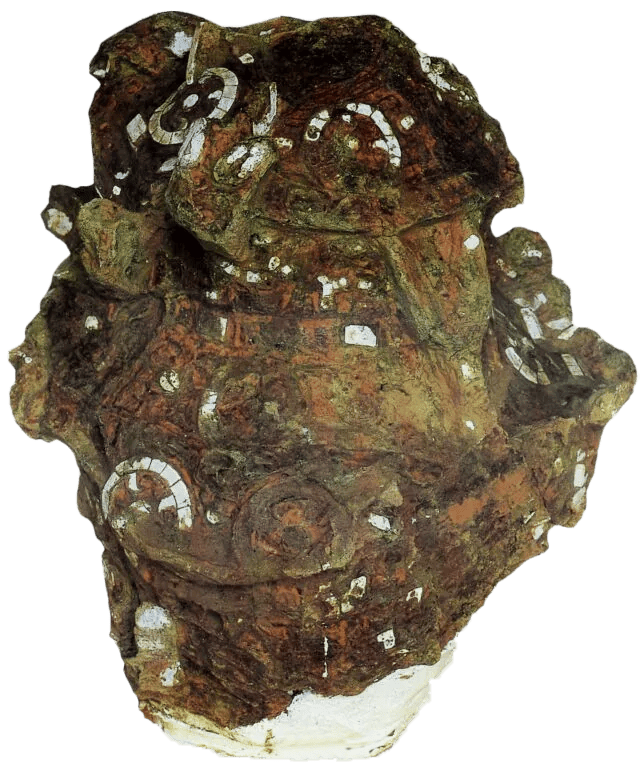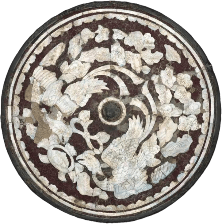 该文物出土于北京房山琉璃河遗址1043号西周燕国墓地,是目前已知世界上最早的螺钿漆器实物之一。器表以大漆绘制兽面凤鸟纹组合图案,通过镶嵌白色螺钿薄片突破传统漆器单色限制,其螺钿磨制厚度仅0.2毫米且镶嵌边缘严整,展现出西周工匠精湛的薄片加工与嵌贴技艺。器物采用漆木为胎,表面髹黑漆作底,运用螺钿技法镶嵌磨制精细的蚌壳薄片。经检测,螺钿薄片镶嵌技法精湛,纹饰以大漆绘制兽面凤鸟纹,并镶嵌白色螺钿薄片。白色螺钿与黑漆基底形成鲜明对比,解决了天然大漆无法呈现纯白色系的技术难题。