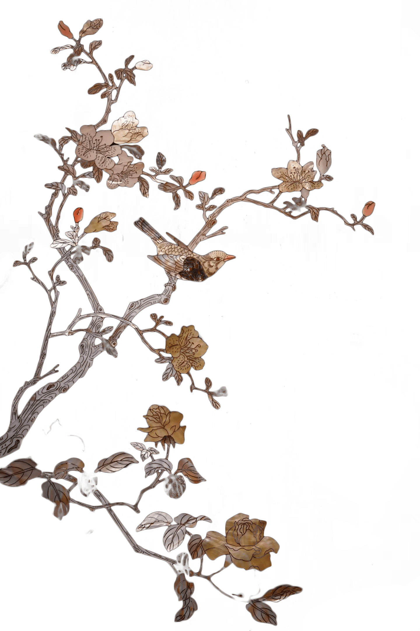 螺钿是一种传统的装饰工艺,其主要材料是螺壳与海贝,这些天然材料经过精心挑选,因其色彩斑斓、质地坚硬且纹理独特而备受青睐。制作螺钿所需的工具较为多样,包括用于切割螺壳和海贝的精细刀具、打磨工具,此外,还需要一些辅助工具,从而赋予它们精美的装饰效果。